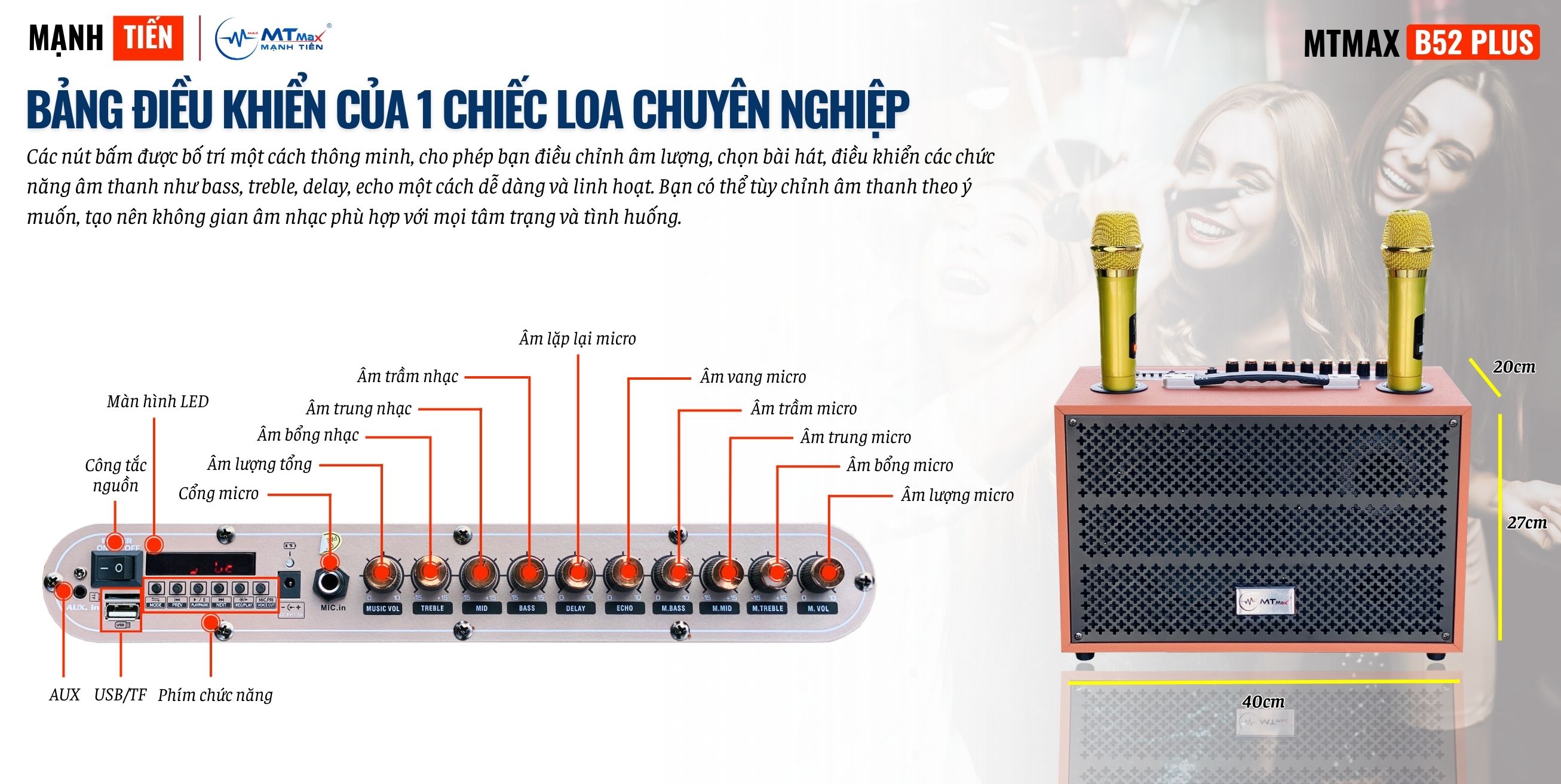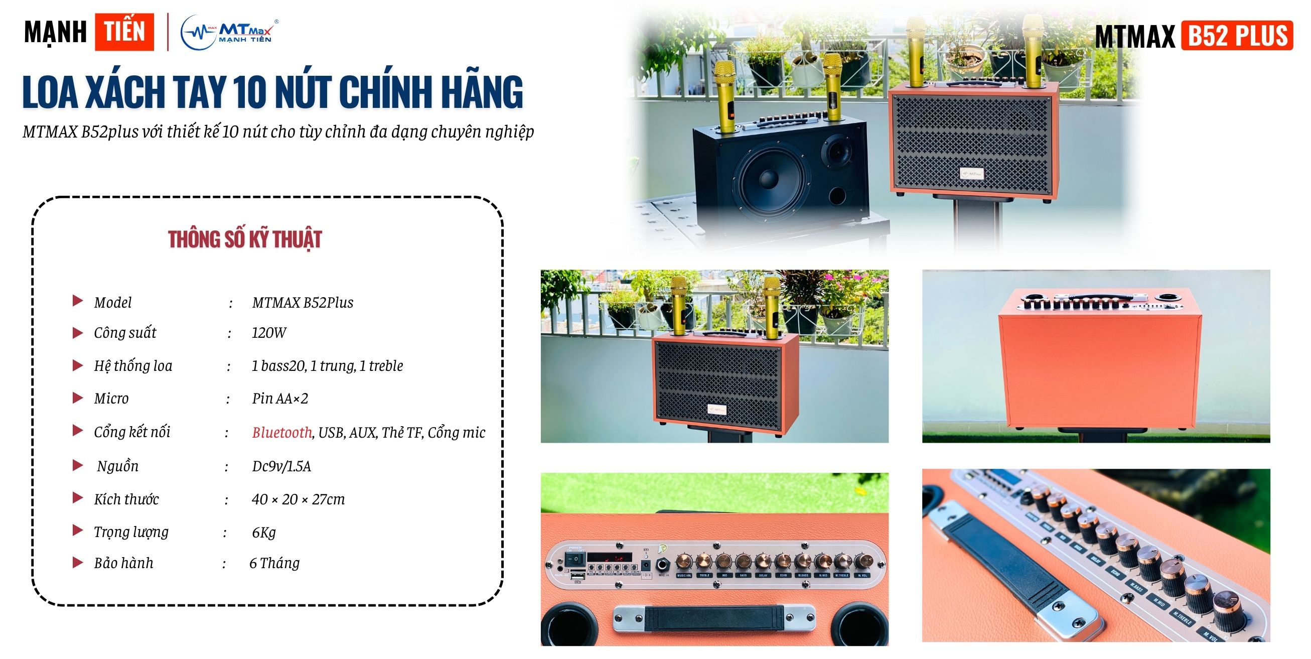 Loa Di Động 10 Nút MTMAX B52PLUS Bass 20 Chỉnh Bass, Treble, Delay, Echo Đa Dạng Cổng Kết Nối Âm Thanh Chân Thực Chi Tiết